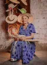 Reconocida por su dedicación de toda una vida al arte del tejido en paja bombonaje. Desde los 10 años perfeccionó esta técnica ancestral, transformándola en un emprendimiento familiar que ha sostenido por más de 40 años bajo el nombre de Artesanías Leito.